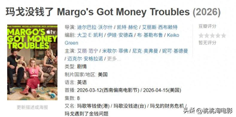 艾丽·范宁主演的新剧《玛戈没钱了》已正式开播。该剧讲述了一位单亲妈妈的故事,不仅剧集质量上乘,在烂番茄上也收获了极佳的媒体口碑。女主角艾丽·范宁更是奉献了演艺生涯中尺度最大的一次表演,感兴趣的朋友不容错过。