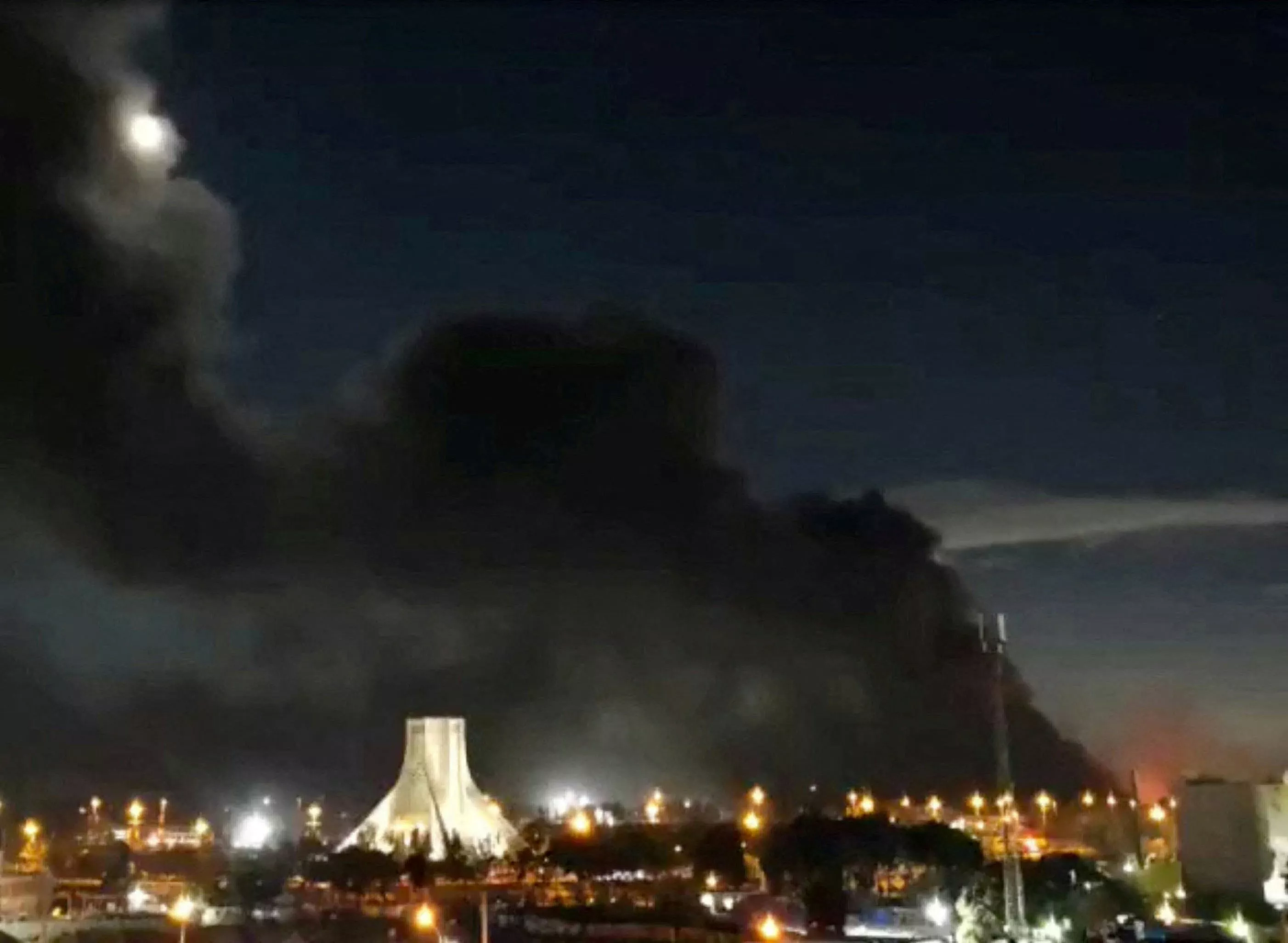 图为2026年4月4日,在美以向伊朗进行打击期间,伊朗德黑兰遭到空袭后,上空升起浓烟。(Social Media via REUTERS)
