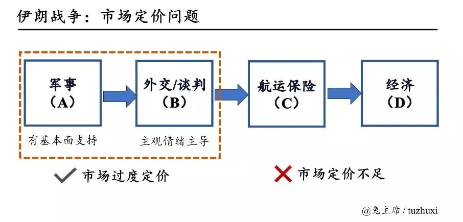 美以伊战争,可以理解为至少有三条线,军事、外交、经济。如果要再增加分析的颗粒度的话,还可以加上第四条线,航运保险。(兔主席)