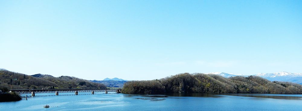 位于仙台郊外的西南部,釜房湖离市中心约有40分钟的车程。图中背景里的雪山群峰是藏王国家公园的所在地,其海拔高度在1800米左右。