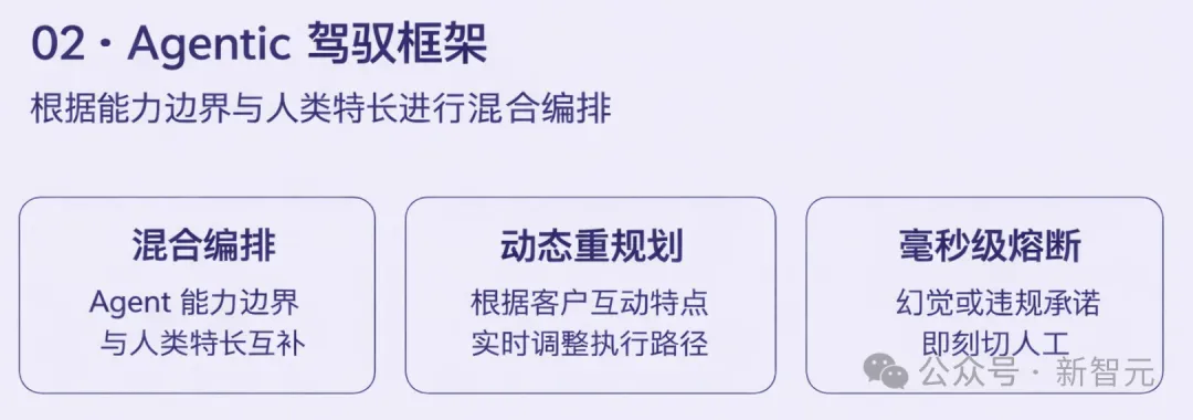 Agentic驾驭层解决模型出错的瞬间,比如当模型出现「幻觉」或违规承诺时,系统会在毫秒级触发熔断,切换到人工链路。
