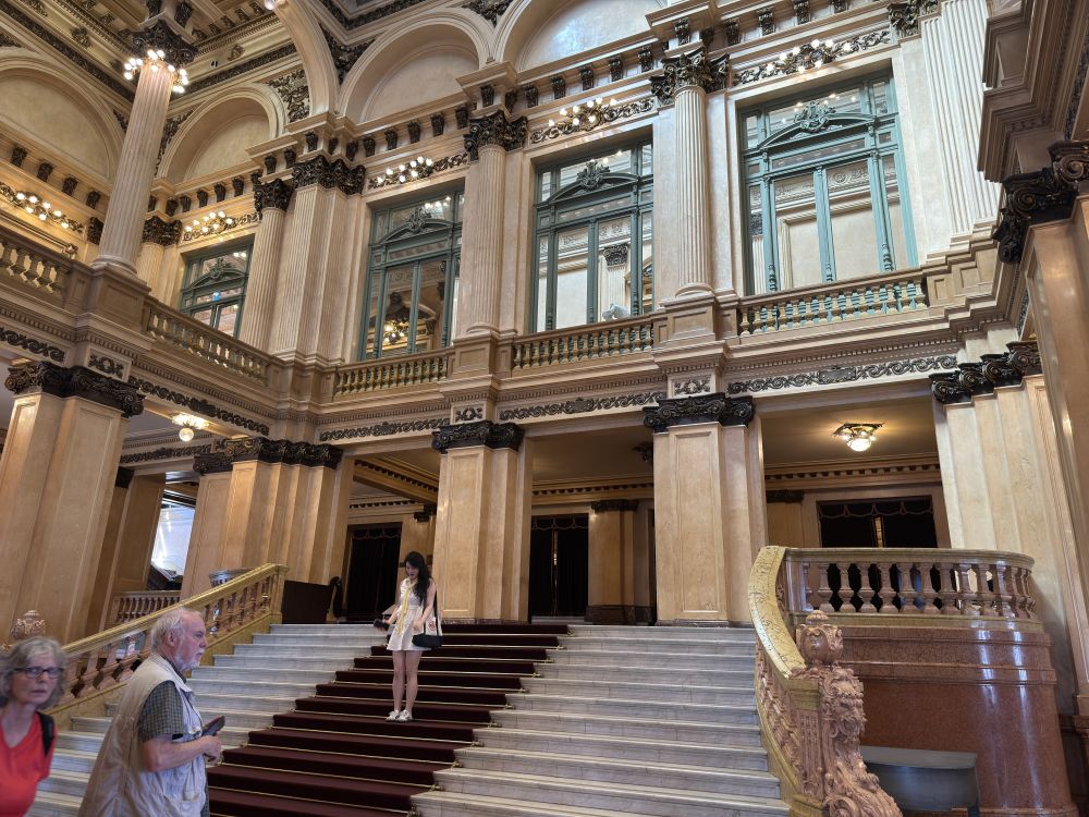导游告诉我们所有建筑材料都是来自于欧洲。就建筑的精美程度而言,如果和近年来去过的伦敦阿尔伯特音乐厅,马德里和巴塞罗那音乐厅,以及巴勒莫音乐厅相比,我觉得科隆剧院毫不逊色。