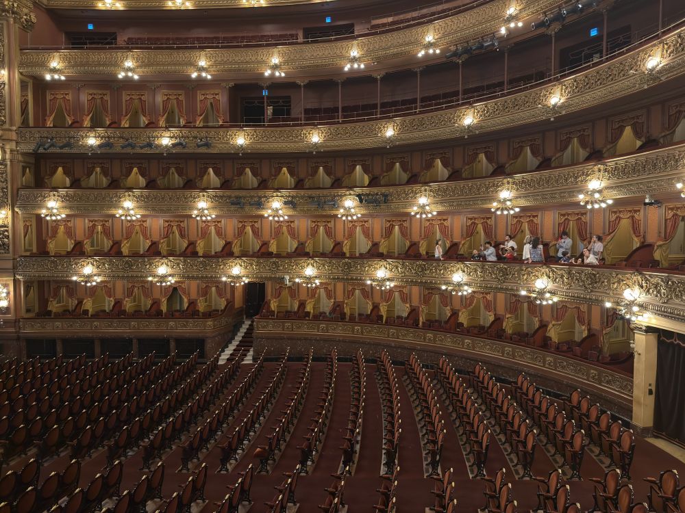 科隆剧院每天提供导览游,时间为一小时。剧场内部通常没有灯光,我们去的时候因为正在准备晚上演出的舞台布景,有幸看到剧场内部结构和装饰。