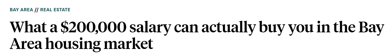 虽然这个分析简化了购房的多方面因素,但提出了关键问题:用20万美元年薪,在湾区到底能买到什么样的房子?哪里还能负担得起?哪些地区完全买不起?不同收入水平如何规划买房预算?