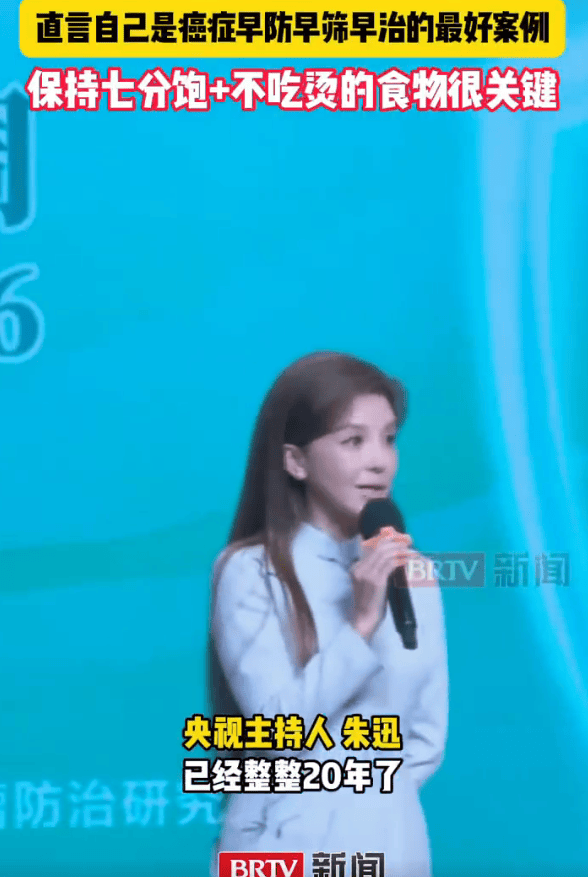 朱迅说:“我从2007年到现在,已经整整20年了,我这20年其实是我们台工作量最大的主持人之一,我非常繁忙的工作量有30次进藏,然后我现在还可以跑马拉松。您不觉得站在您面前的,就是一个非常好的早治、早防、早筛的一个案例。七分饱、不吃烫的东西,这是我保持到现在为止,能保持身体这样状况的很重要的一点。”