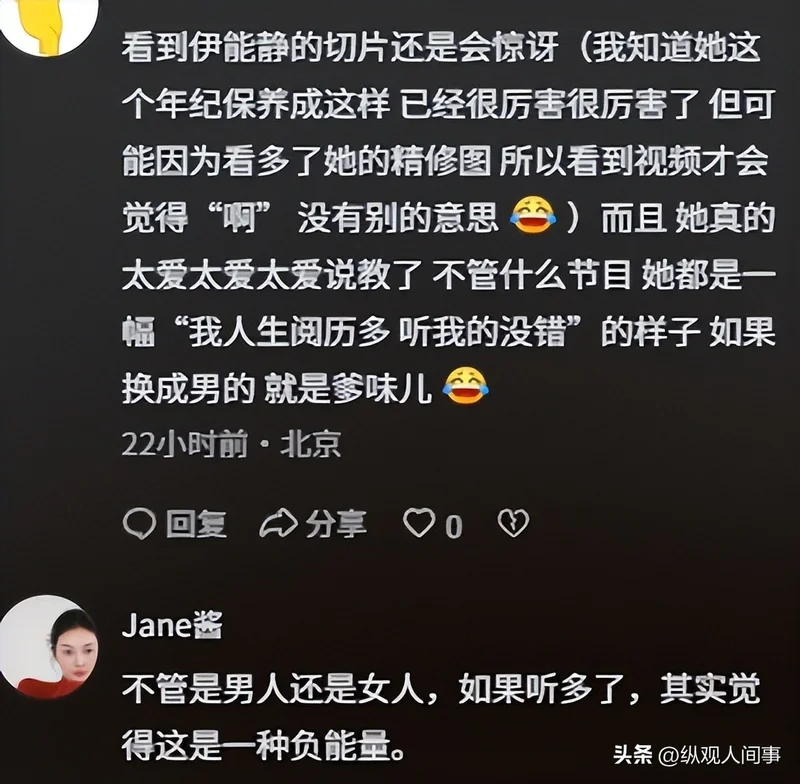 但更多人觉得,秦昊那瞬间的慌张,根本不是心虚,而是真的被伊能静絮絮叨叨的碎嘴子搅得心烦。