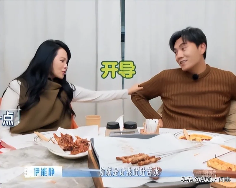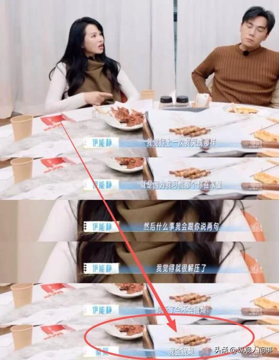 更让人膈应的是后面的“恶心一幕”——伊能静聊着聊着,突然嘴滑爆了个料,说秦昊以前跟别人在一起时,俩人吃饭都互相喂。