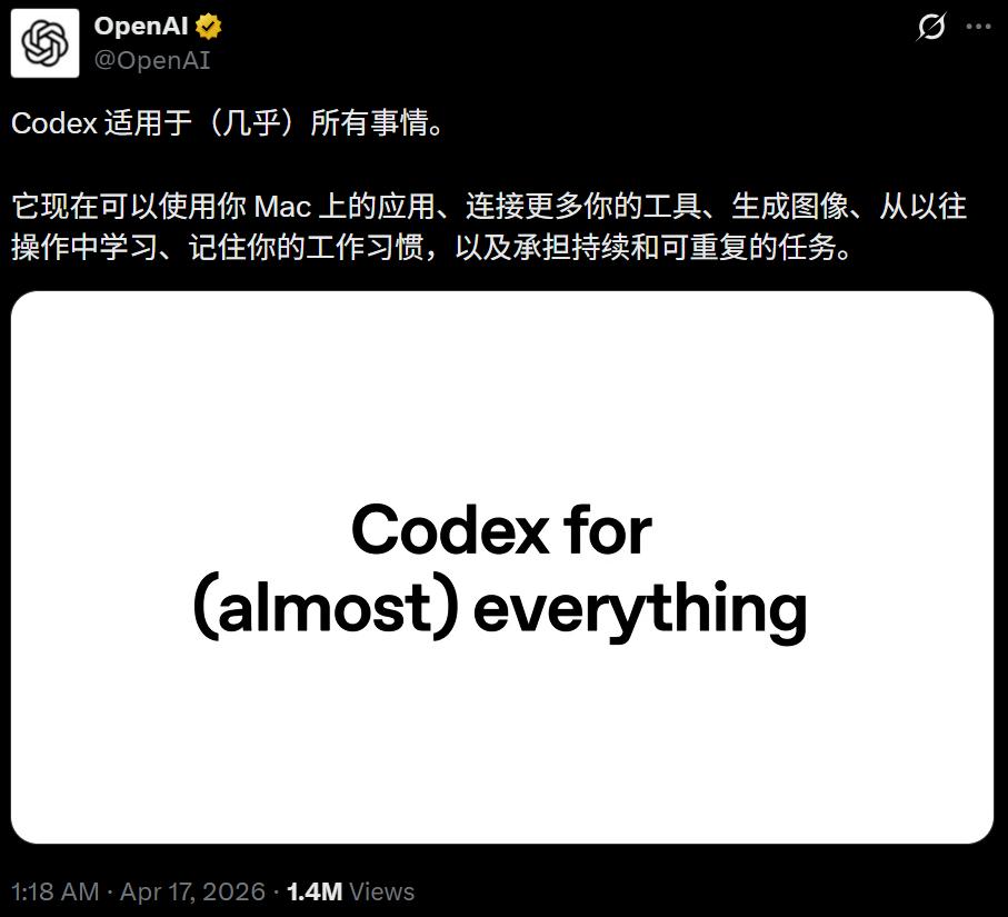 你的电脑长出了第二个光标了!OpenAI重磅更新Codex,AI能在后台自己开模拟器、修Bug,完全不耽误你前台工作。一代「赛博牛马」正式觉醒。