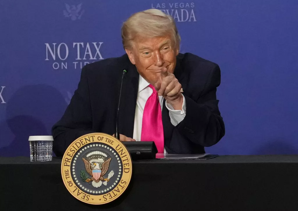 美国总统川普16日在圆桌会议答复提问。(美联社)
