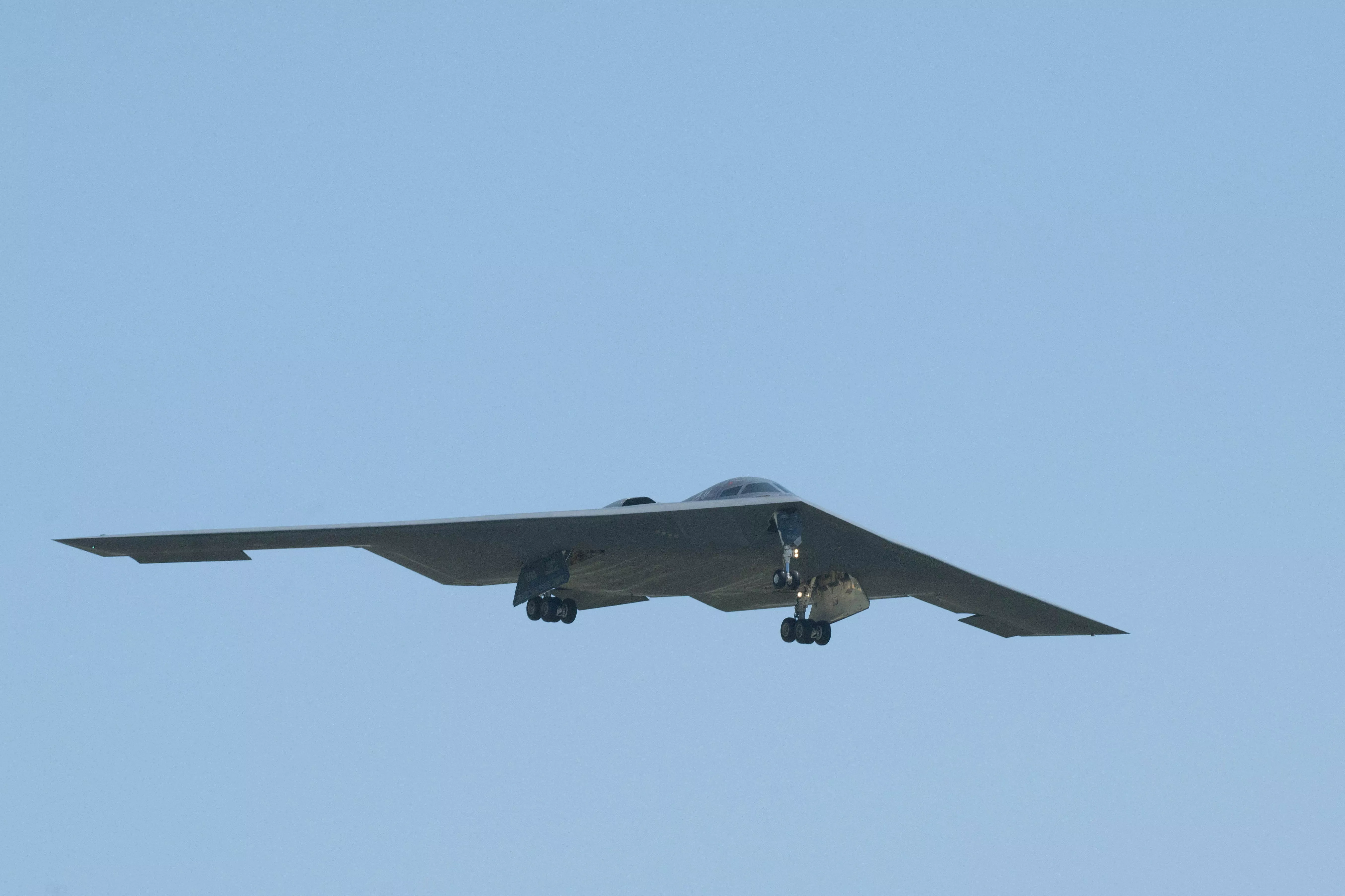 2025年6月,美国空军一架B-2隐形轰炸机在执行完“午夜之锤”行动(Midnight Hammer,美国袭击伊朗核设施)后返回美国密苏里州怀特曼空军基地(Whiteman Air Force Base)。(Reuters)