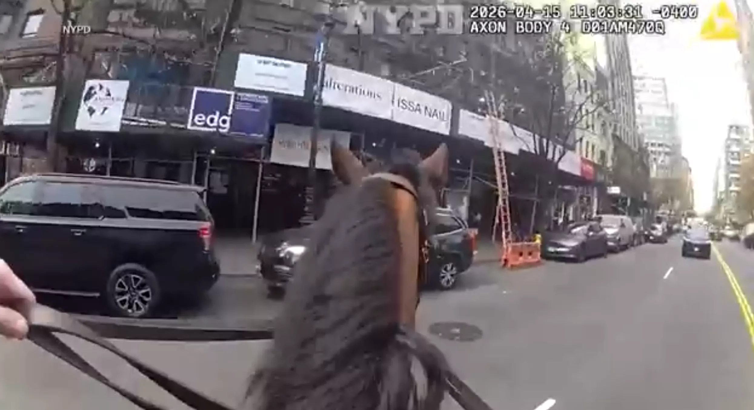 ¡No podrás creer este video! La cámara corporal de un policía de Nueva York captó el momento en que persigue a toda velocidad a una sospechosa por las calles de Manhattan... ¡montado a caballo! La justicia llegó al galope. pic.twitter.com/1qxfz4qmG7 — News Day Mundo (@NewsDayMundo) April 16, 2026