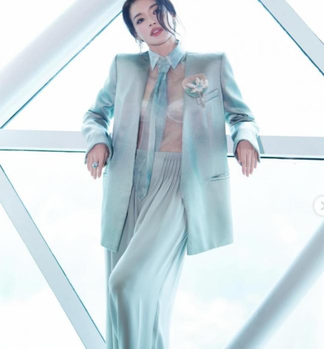 从曝光照片可见,舒淇身穿湖水绿色调的高级订制服,设计融合利落西装轮廓与轻柔薄纱材质,上半身透视剪裁让内搭若隐若现,搭配珠宝点缀,整体造型呈现刚柔并济的风格。 近距离特写中,她肤况细致、轮廓紧致,整体状态维持良好,即使年满50岁仍展现稳定外貌。 她也不改率性个性,分享收工后回家吃寿面庆生,轻松带过生日时刻。