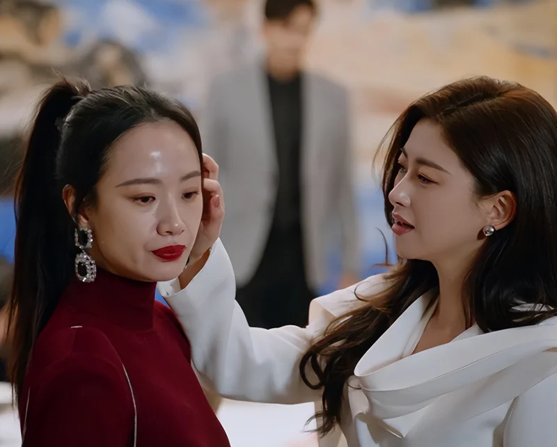 反观朱珠饰演的许蜜语,一袭红裙加身,卷发轻轻撩拨,红唇明艳动人,哪怕只是安静地站在那里,就自带娇媚少妇的强大气场,将原配的优雅与底气展现得淋漓尽致。而李梦在剧中全程满脸油光,肢体动作刻意又做作,仿佛在生硬模仿“小三”的姿态,却只让人觉得尴尬不已,丝毫没有角色该有的风情。