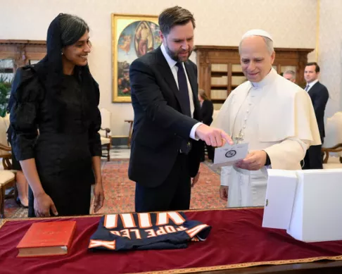 2025年5月,万斯携妻子与教皇利奥十四世在梵蒂冈会面。