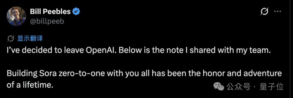 随着Bill Peebles离职,Sora也彻底成为了历史。
