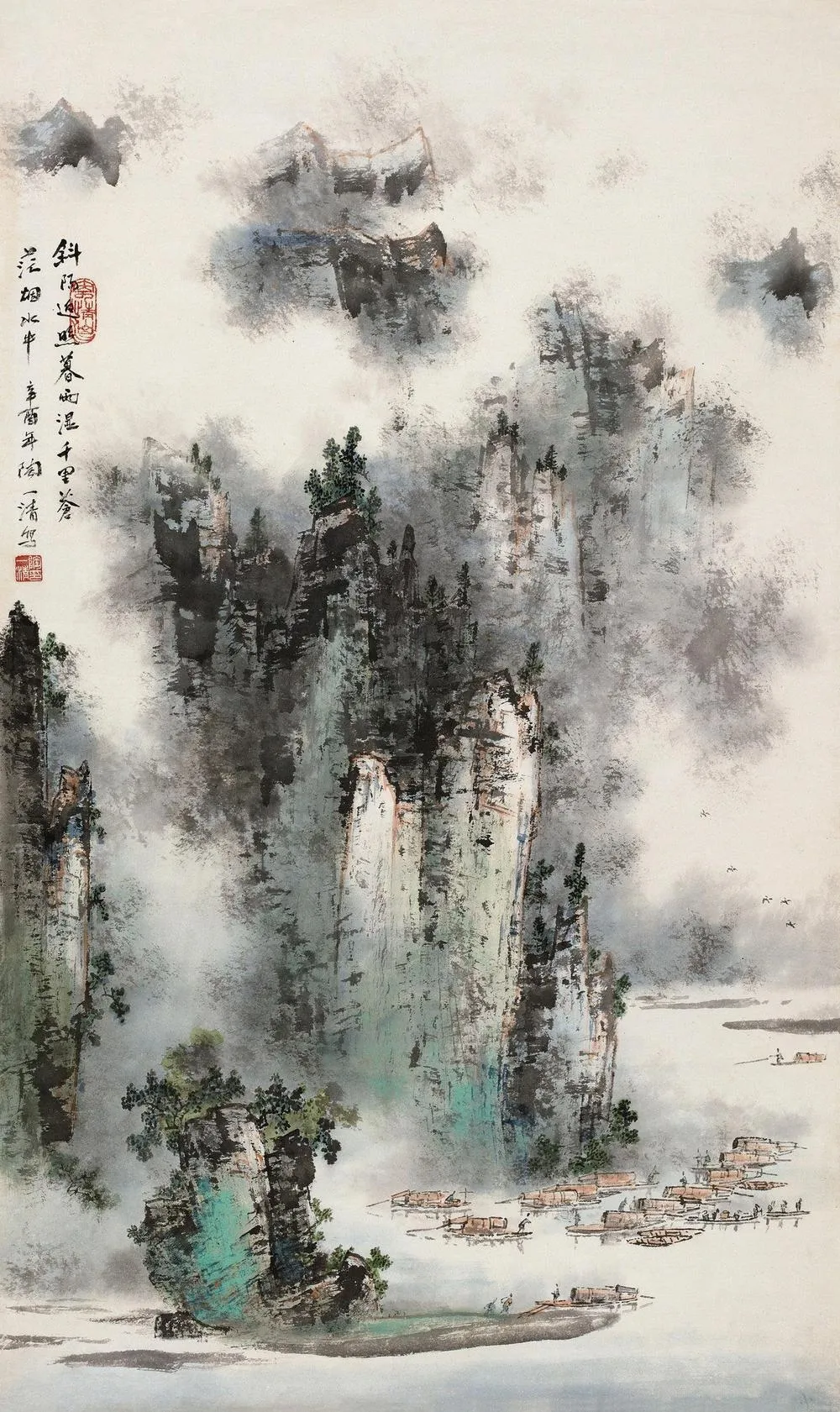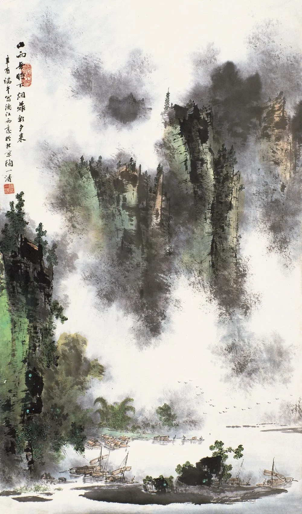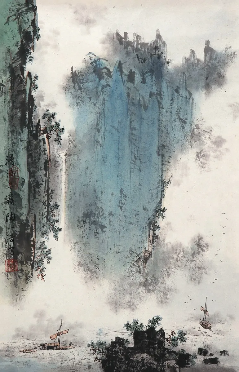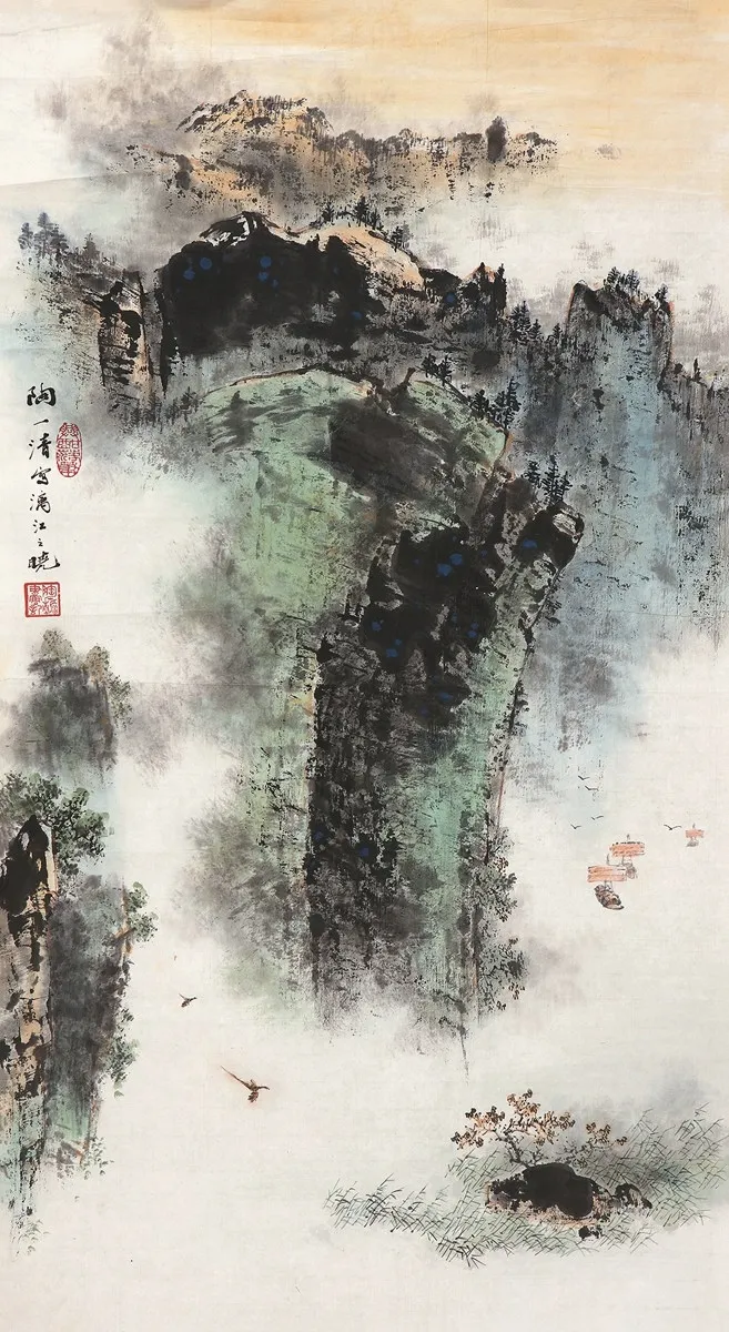 作品有"远观其势,近收其致"之妙,笔墨纤秀、泼辣兼而有之。喜作大画,笔墨不苟,构思严谨,青绿设色在传统的基础上有所创新,为海内外识者称赏。