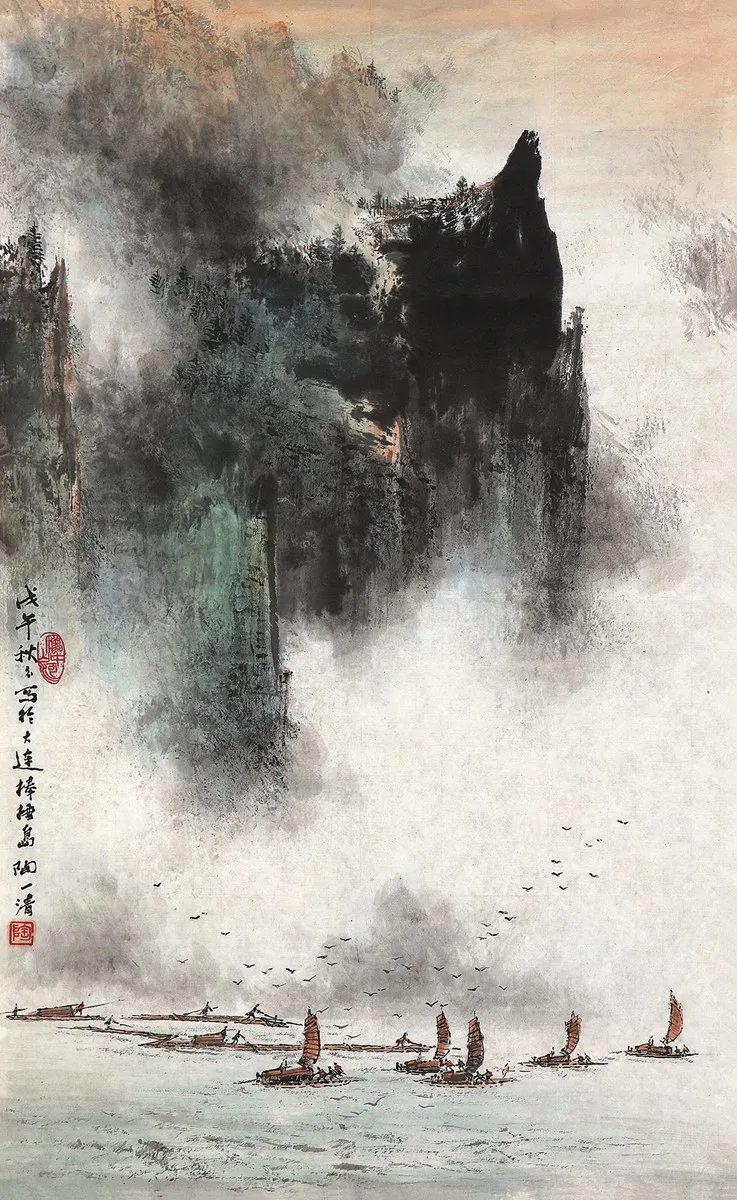 自幼学画起自临摹,以两宋名作为范本,参考元、明、清诸名家,鉴于北宗有笔而渲染稍差,尝以南宗弥补,融南北二宗山水于一炉,以造化为师又不断从现实生活中吸取创作素材,并取西洋画之优点,丰富表现内容,努力做到古为今用,洋为中用,主次分明。
