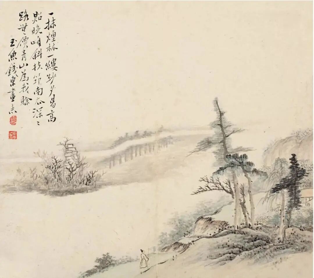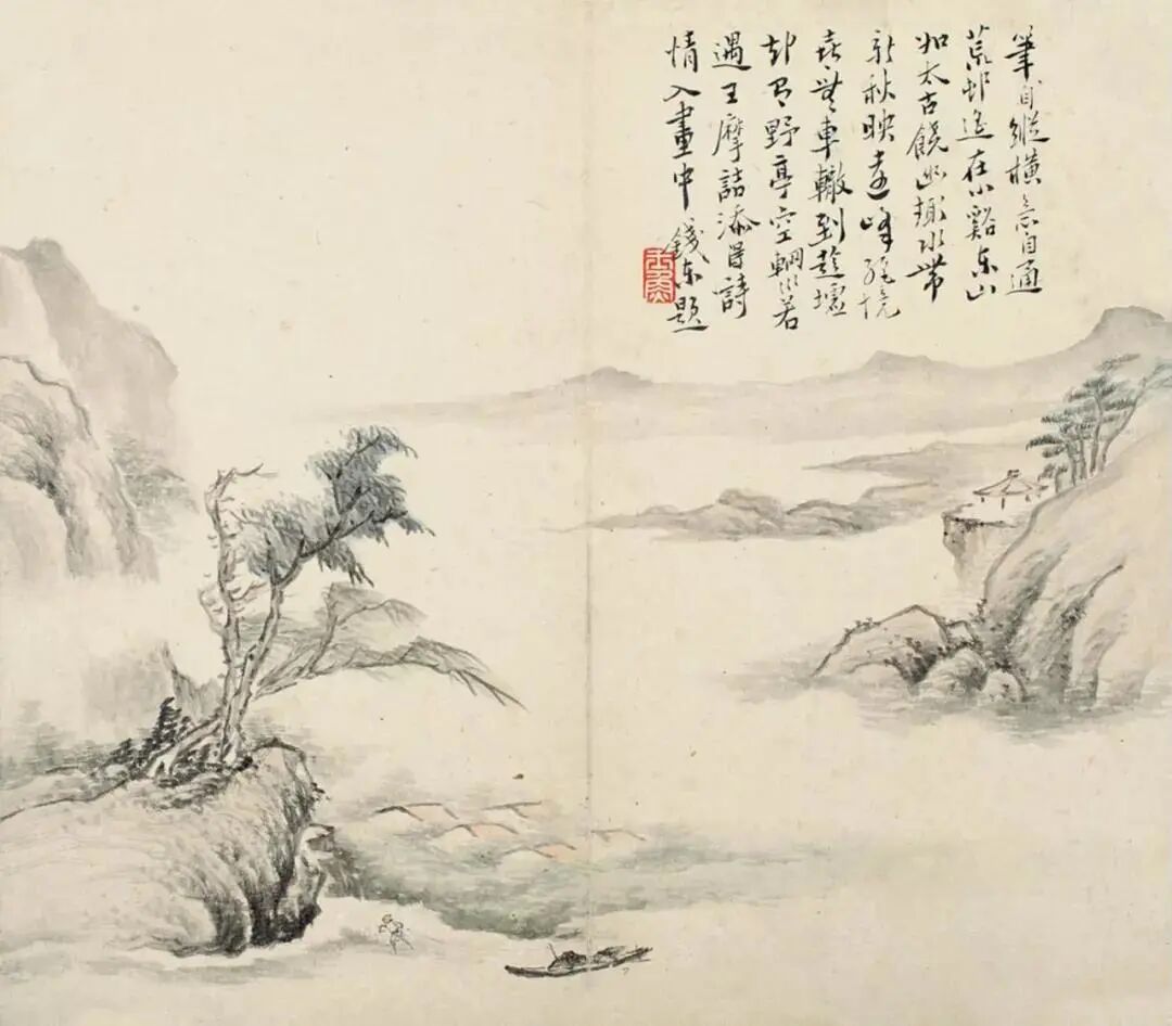 仁和(今浙江杭州)人 侨寓江苏扬州 工诗,尤长词曲 并善书画,学恽寿平笔法 钱东在画史上籍籍无名,但据他的好友画家改琦为其造像,可知其人澄性养身、超脱世尘、清净无为的精神气质。 钱东这组山水册写有渔家乐趣、夕阳归鸦、溪流溟溟、烟云峭壁、关山萧索、晚照峰斜...笔墨苍润,构图别致,在清初诸家中是逸品上乘。 钱东 《山水册》欣赏