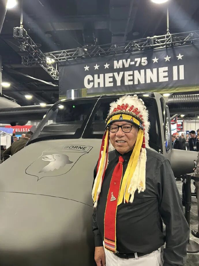 据2026年4月17日报道,美国陆军于2026年4月15日在田纳西州纳什维尔由美国陆军航空协会主办的陆军航空作战峰会上,正式将其未来远程突击飞机MV-75倾转旋翼机命名为夏延二号,还展示了模型。此次命名延续了陆军以美洲原住民部落命名直升机的传统,夏延族人在大平原上居住了400年,其生活方式要求持续的机动性,能够迅速集结、分散和移动以满足环境需求,这种能力在MV-75平台上得到了体现。