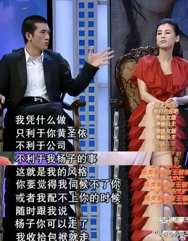 有一次,俩人一起录访谈的时候,主持人问黄圣依平时喜欢做什么,杨子直接插话说“她能有什么爱好,没文化”。