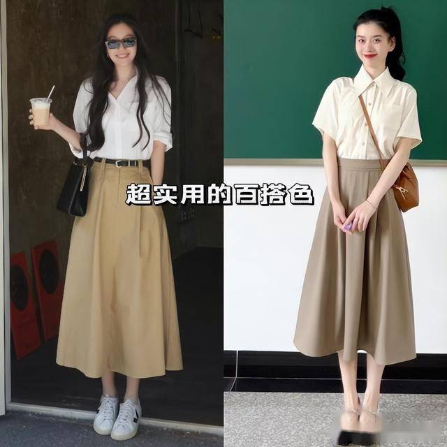 卡其色,作为介于米色与棕色之间的中性色,自带一种温润柔和的质感。它没有黑白灰的冷硬,却比艳丽色彩更显内敛与耐看,是提升优雅气质的不二之选。它对肤色有着极高的包容度,无论是黄皮还是黑皮,都能被其柔和的色调所衬托,显得干净而有气质。浅卡其清爽减龄,深卡其沉稳大气,无论是风衣式连衣裙、针织裙还是简约的A字半身裙,卡其色都能赋予穿着者一种从容不迫的知性美。搭配时,用白色或米色单品进行点缀,更能凸显其简约高级的质感。