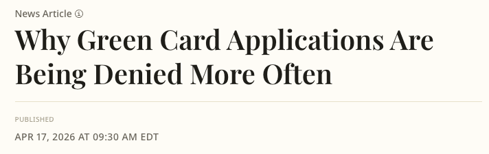 曾于2025年末离任的USCIS前高级官员Ricky Murray表示,尽管身份调整(adjustment of status)程序在法律和监管层面并未出现重大变化,但执法实践已使绿卡申请“前所未有地繁琐”。