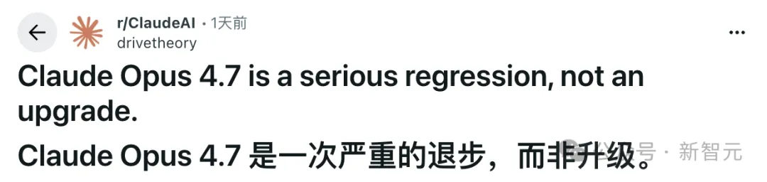 一篇「Claude Opus 4.7是严重倒退,不是升级」的Reddit帖子迅速冲上3000赞。