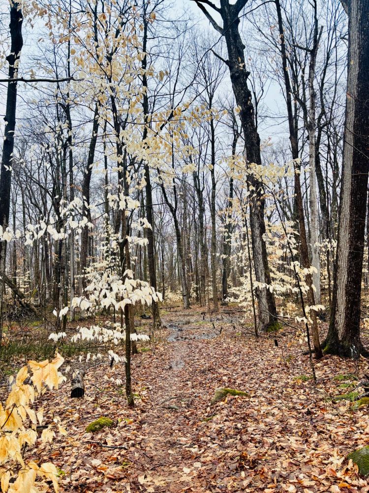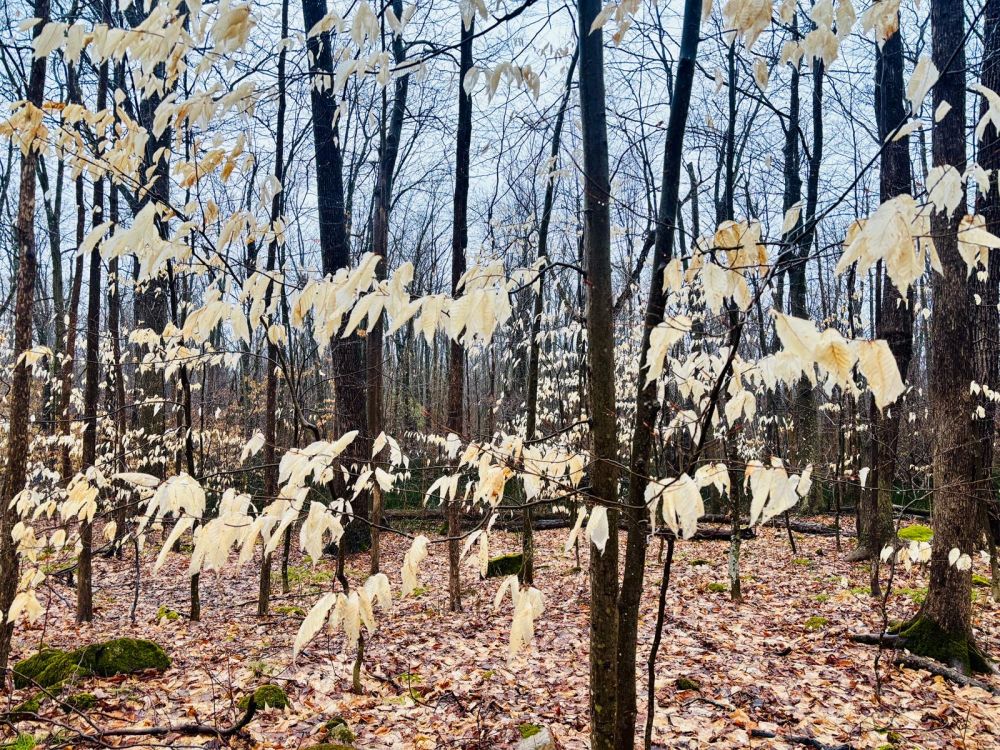 这样的树叶,是一种多么稀有神奇的存在,经历了漫长冬日严寒狂风暴雪的洗礼,它们依然挂在枝头,这样的色彩与精神,让人感叹。好奇之下,伸手想探探什么原因让这些树叶挺立枝头,发现叶柄极具韧性。留下的这些叶子,主要成分是啥呢?纤维素?木质素?…… 为什么单单它们能够挺立枝头?