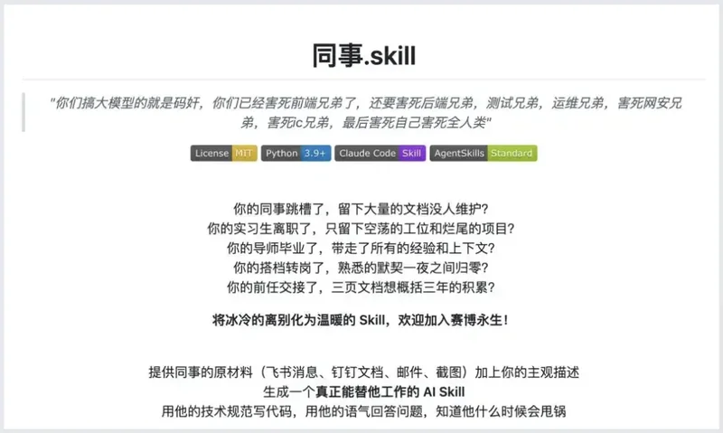 ▲GitHub上的「同事.Skill」页面截图