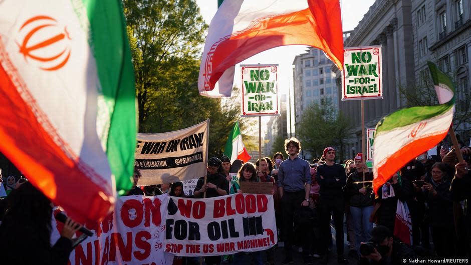 特朗普威胁要消灭伊朗“整个文明”,引发美国及全球普遍愤怒。图为4月7日在华盛顿的抗议活动。