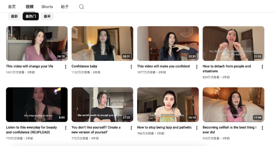 她的作品《这则视频将会改变你的人生》《这则视频将会让你变得自信》《学会自私是人生的必修课》《每天来听一遍显化你的财富和美貌》播放量均在千万级别。