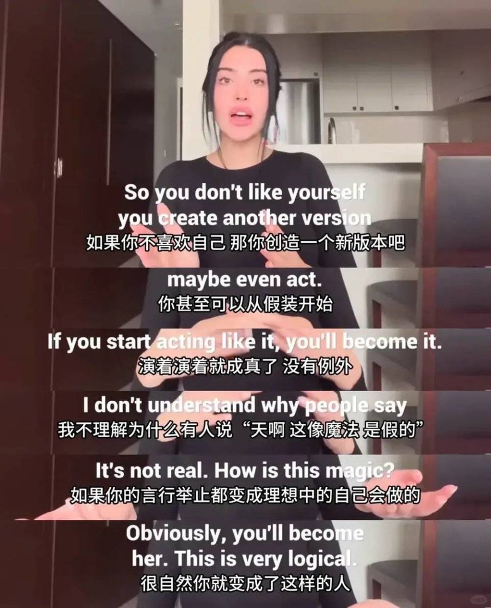 她承认自己有一份长长的显化清单,“我不会停下来,直到现实世界符合我清单上的每一条”。