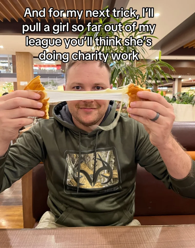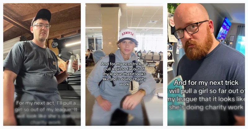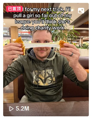 话说,这段时间 tiktok 上流行的一个新梗还蛮逗的。按照流程,一般是一个“样貌丑陋”的男子先晒一张自拍照辣网友眼睛。然后,配上贱贱的文字:“我的下一个绝技是,我要娶一个我配不上的女孩,你会觉得她是在做慈善”或者:“……你会觉得我妈妈在给她买单。”