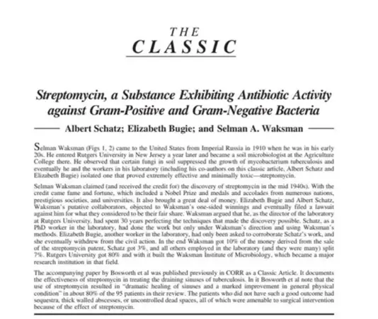 几个月后,关于链霉素发现的论文见刊了。Waksman 将 Schatz 列为一作。