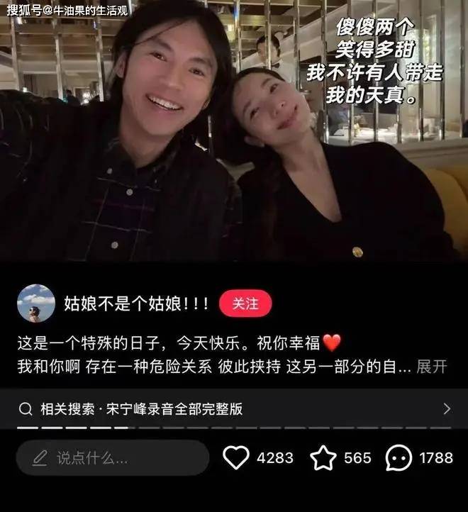 宋宁峰原名宋宁,把自己名字改成宋宁峰,是因为峰从溪中来。他们是2007年认识的,2012年9月结婚的,到了2019年9月离婚了,算是体面离婚。