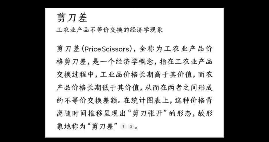 写下上述一段话,既是出自我对于农村对于家乡的了解,又来自于对于公开资料的查询。无论哪种途径得到的事实,都让人唏嘘惊异。你再去了解更多的农业历史,你会知道统购统销时期的“剪刀差”。通过工农业产品价格差,农民为国家工业化提供了巨额积累。你会知道2006年之前交的公粮,是需要拿出最好的一部分粮食上交的,上交时唯恐公家不收,若是收成差,还需额外买他人的好粮去上交。