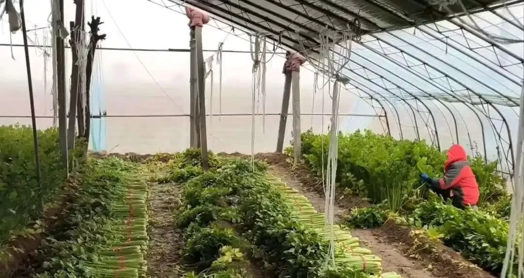 图为过年前,我在芹菜大棚采访务工农民图片