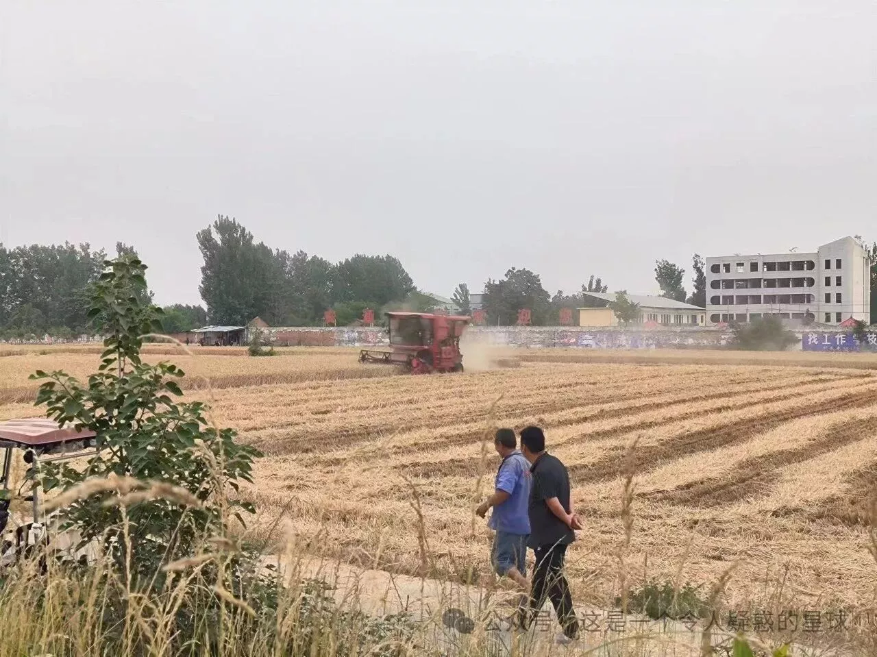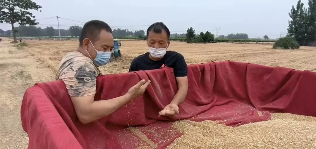 图为小麦收割后,我爸和叔伯在观察麦粒情况