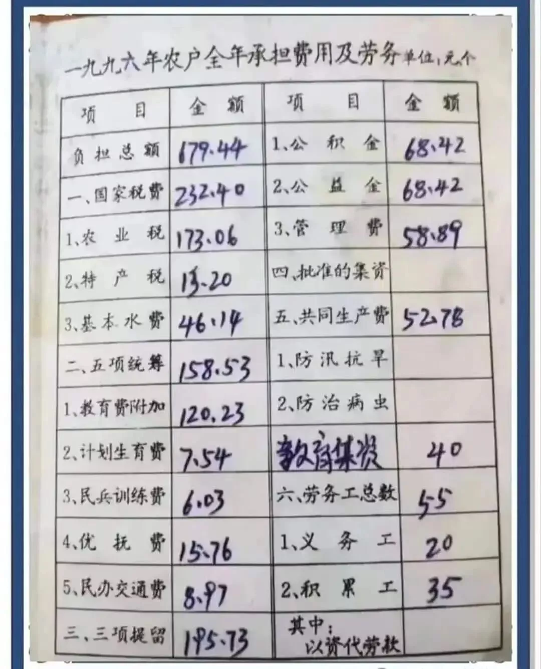 你会知道改开以后的“三提五统”,你会了解到“出义工”及“教育集资”。“三提”是指用于村集体生产及水利建设的公积金、用于贫困户供养的公益金和村干部报酬及办公开支管理费。“五统”指的是乡村两级办学、计划生育、军烈属优抚、民兵训练和乡村道路建设。“三提”和“五统”这几项所需的费用均向农户直接摊派收取。“出义工”是说,植树造林工程、水利基础设施及公共道路修建,都是靠农民在农闲时“出义工”的无偿劳动换来的。直到2006年农业税的废除,这些才退出了历史舞台。