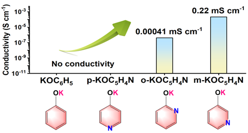 近日,中国科学院大连化学物理研究所氢能与先进材料研究部氢化物能源化学研究中心(DNL1901组群)陈萍研究员、何腾研究员、于洋副研究员团队与厦门大学吴安安副教授合作,开发出一类碱金属羟基吡啶盐新材料。其中,以间位羟基吡啶钾盐为代表的金属有机化合物表现出较高的钾离子传导速率,可作为钾离子固态电解质。