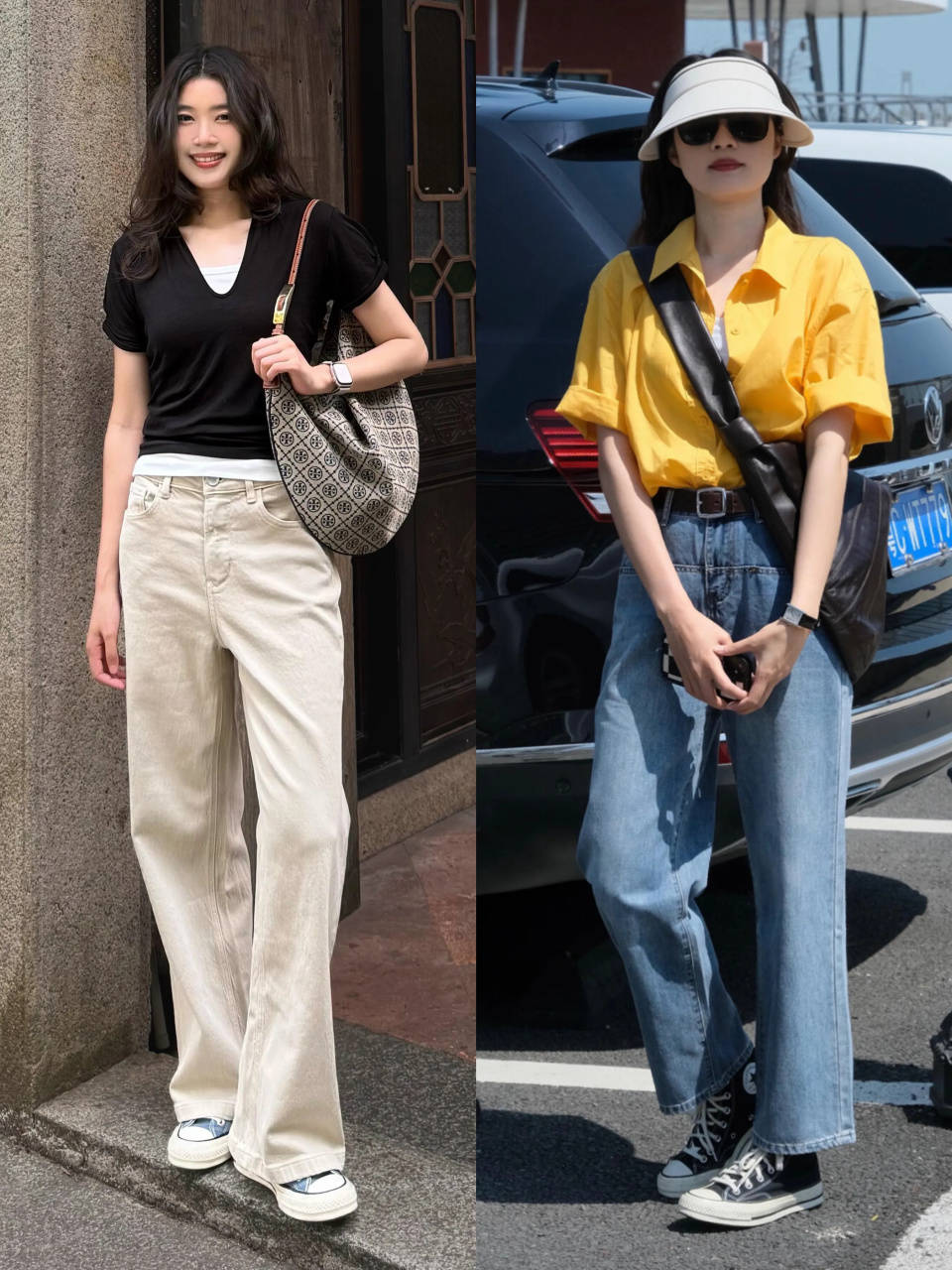 细节①:牛仔直筒裤,利落有型