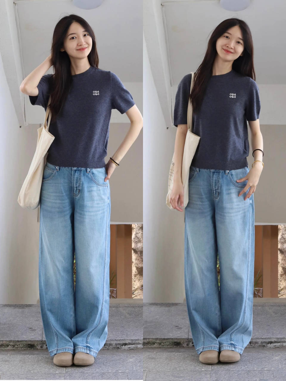 细节②:牛仔阔腿裤,遮肉显瘦