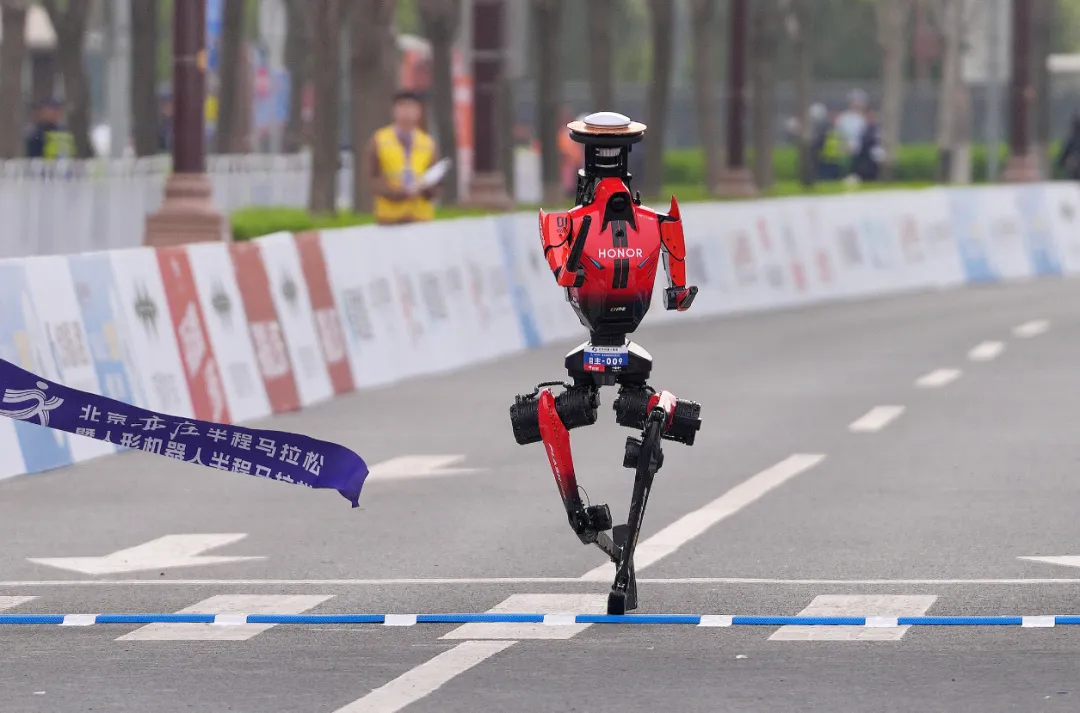 4月19日,2026人形机器人半程马拉松在北京亦庄鸣枪开跑。最终,来自荣耀的齐天大圣队、雷霆闪电队、星火燎原队分别夺得冠军、亚军、季军,而其净用时均超越了57分20秒的人类男子半马世界纪录,机器人以“闪电速度”跑过了人类!