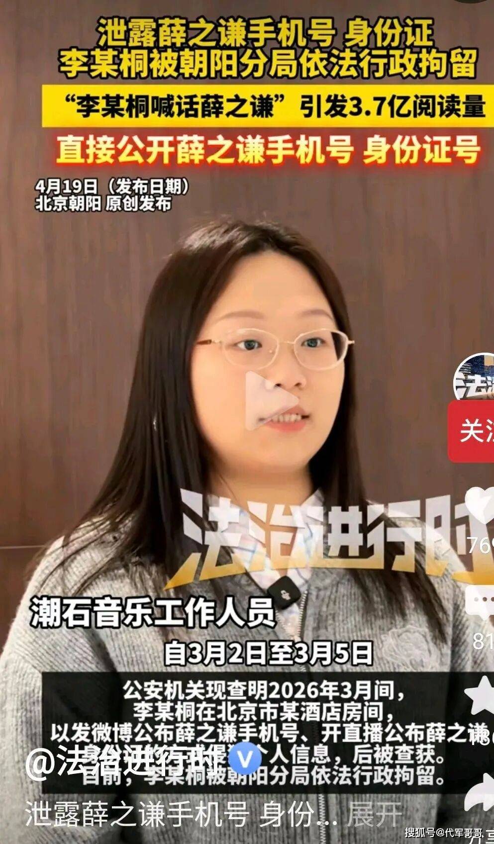 2026年4月19日,#李雨桐被行拘# 话题强势登顶热搜,北京广播电视台《法治进行时》栏目独家证实,李雨桐因非法泄露薛之谦个人隐私,被北京市公安局朝阳分局依法行政拘留,执行期为4月10日至4月20日,目前仍处于拘押状态。这一处罚,让这场持续近十年的娱乐圈恩怨再度引爆舆论,从早年的商业合伙、隐秘相恋,到反目互撕、对簿公堂,再到如今一方触犯法律被拘留,李雨桐与薛之谦的“恩爱情仇”,远比大众想象的更为纠葛复杂。