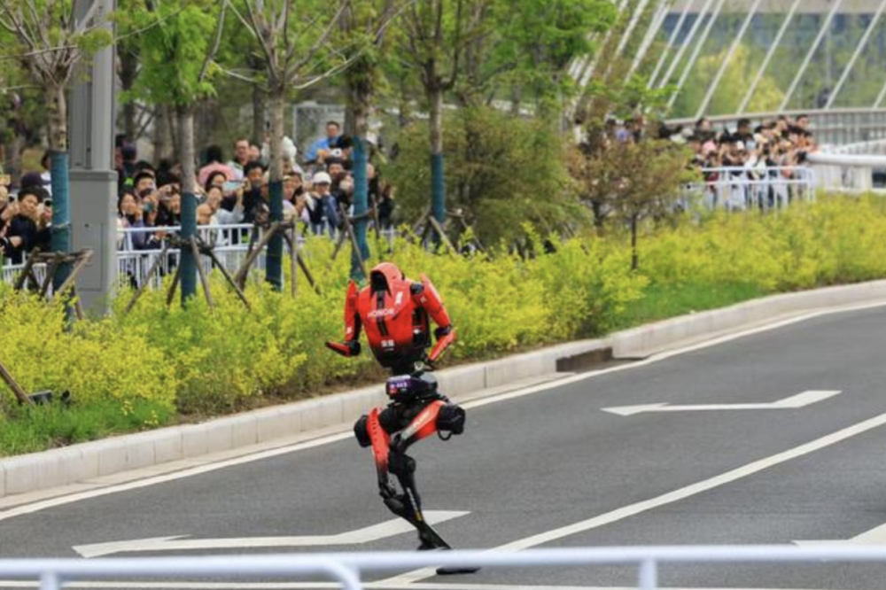 4月19日中午,“2026北京亦庄半程马拉松暨人形机器人半程马拉松”落下了帷幕,本届比赛冠军,由荣耀齐天大圣队的“闪电”机器人摘得,并超过了人类男子半马世界纪录。