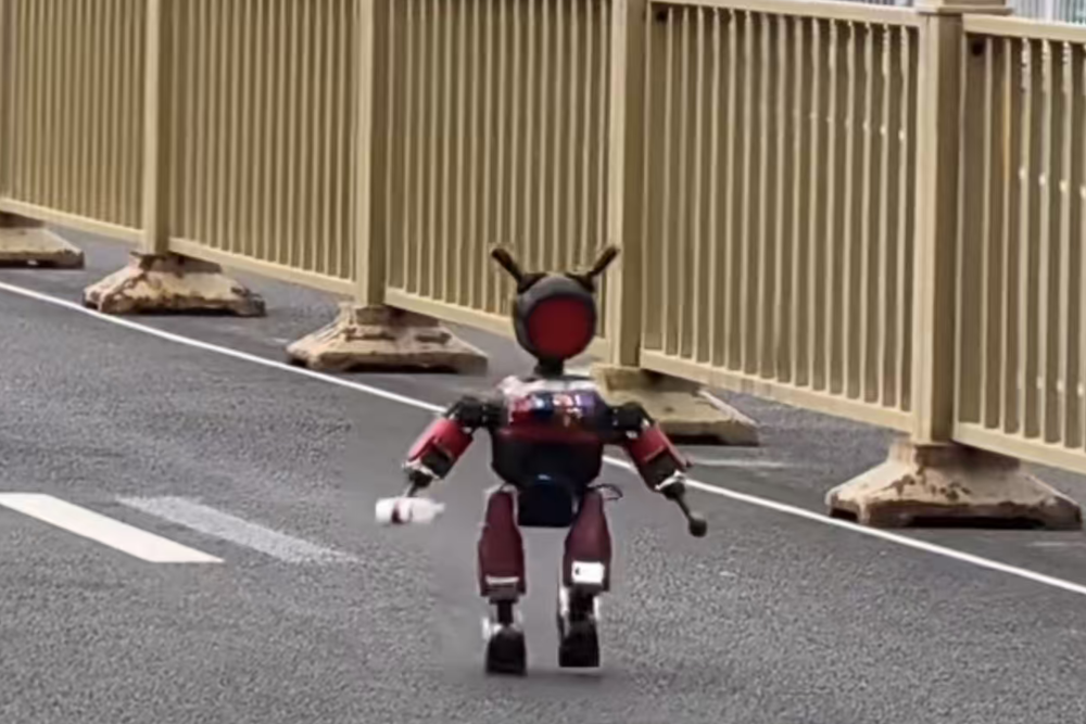 还有一台被观众称为“未成年机器人”的小个子选手——矮小的个头,扎着小辫子,手持奶瓶,迈着高频小碎步奋力向前。虽然跑不快,但全程没放弃,被公认为赛场上努力的“最萌选手”。也引来网友调侃:“禁止未成年机器人参加比赛”。