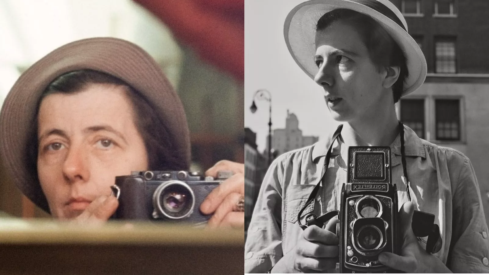 她戴着大帽子,穿着朴素的外套和男士皮鞋,脖子上挂着相机,业余时间反复在街头游走,疯狂地拍照。