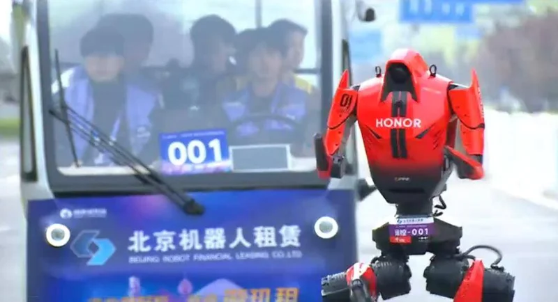 当日比赛中,齐天大圣队的荣耀人形机器人“闪电”以50分26秒(净用时)获得机器人组冠军,而首位人类半程马拉松选手在约1小时07分至1小时08分之间冲线。这意味着,本次赛事中人形机器人已经成功超过了人类的完赛时间。
