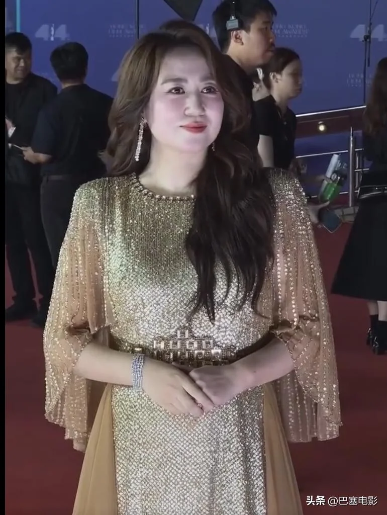 马丽这次又是一身金色战袍,为啥是又?
