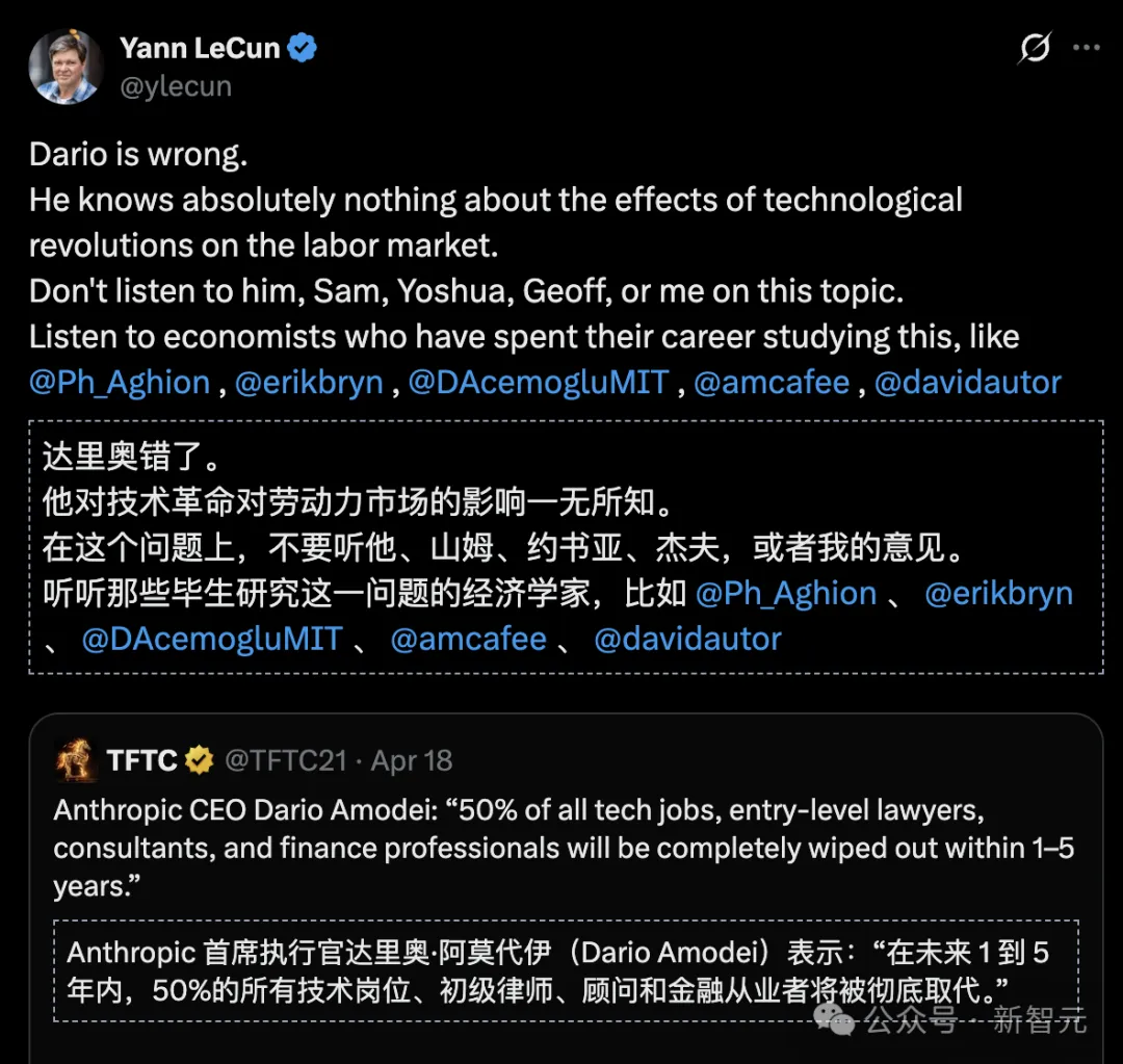 LeCun呼吁大家去听专业经济学家,别听这些AI掌门人忽悠。
